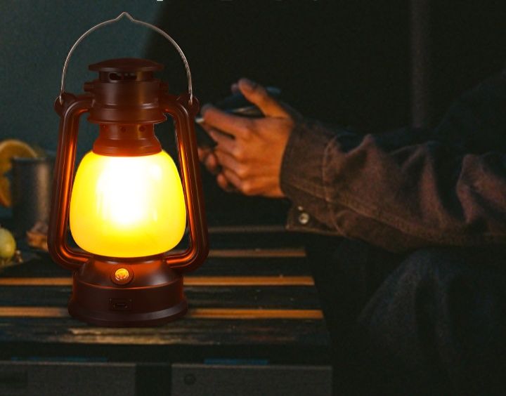 レトロな雰囲気漂う卓上型ランタンで、キャンプシーンに温かな光をお届けします。