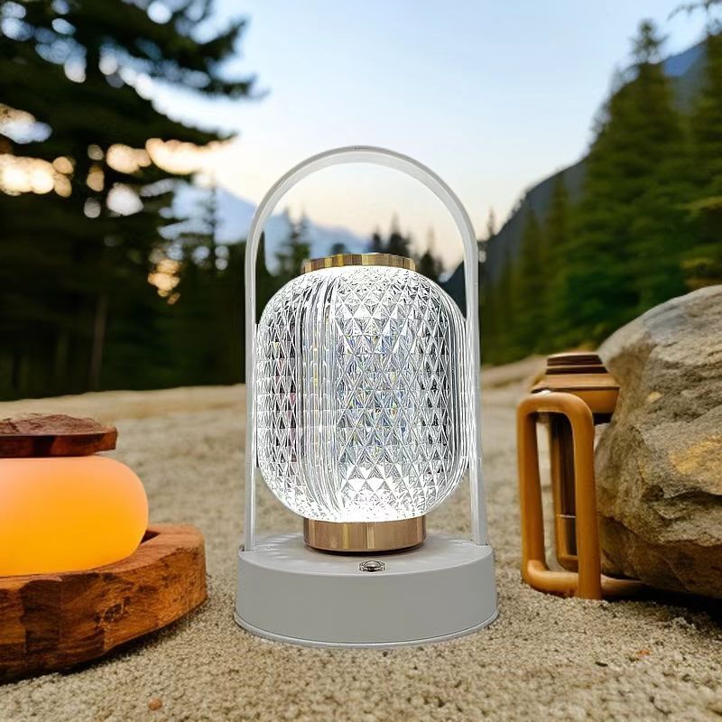 ダイヤカット風のガラスシェードが光を幻想的に反射し、アウトドアの雰囲気を格上げします。