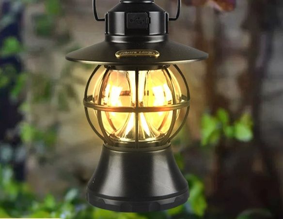 レトロなデザインと実用性を兼ね備えた、キャンプシーンを彩る照明器具です。