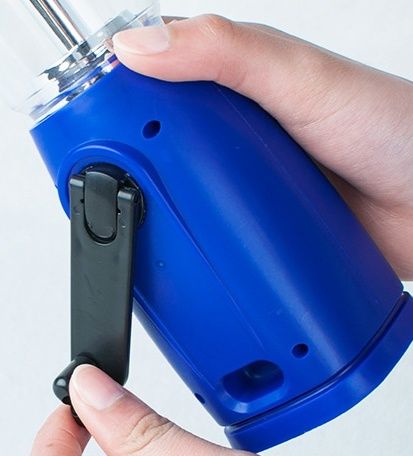 電池不要で手回し充電により約1分から2分の操作で25分から30分程度の連続点灯が可能です。
