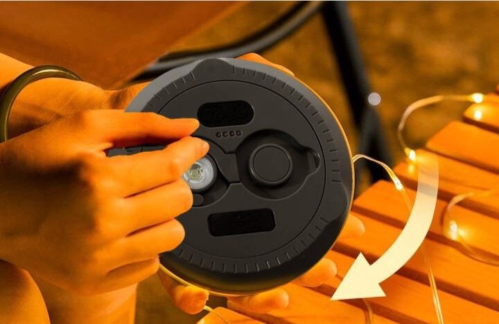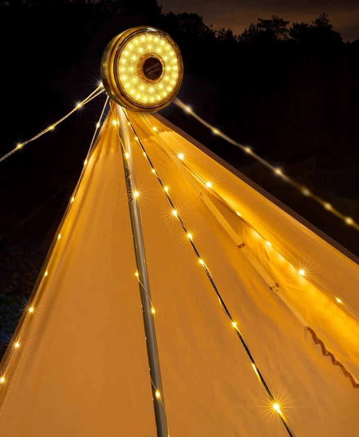 中央の露営主灯は360度全方向を照らし、付属の10メートル灯串で広範囲をカバーします。