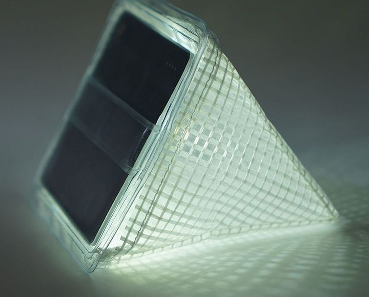 三角錐の美しいフォルムが特徴的な折りたたみ式ランタンです。