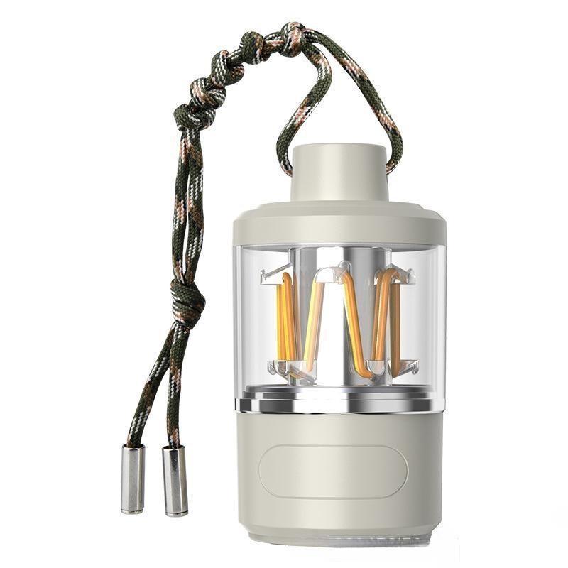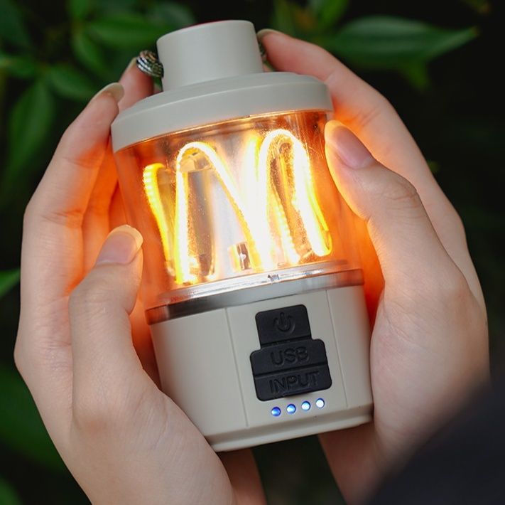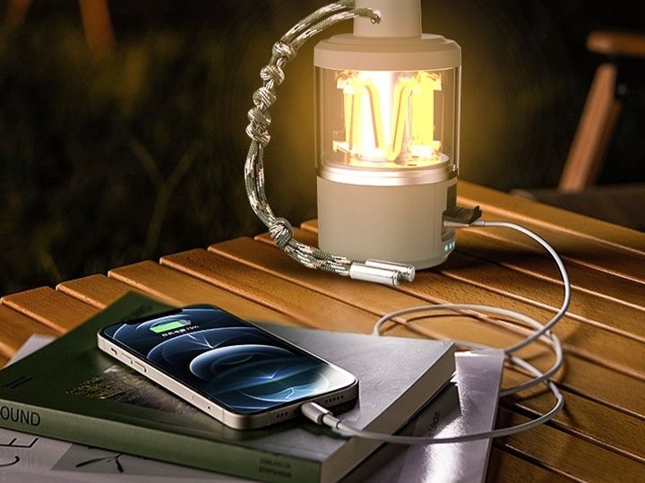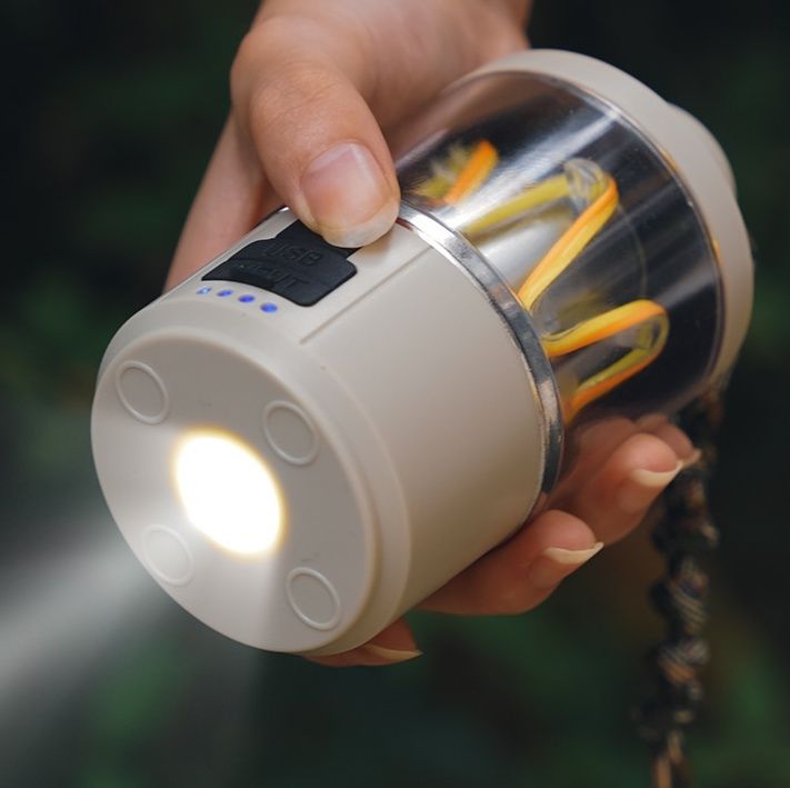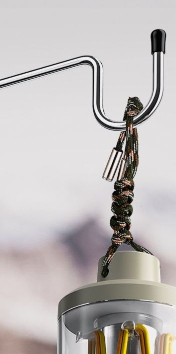 夜間のキャンプサイトを優しく照らす実用的な照明器具です。
