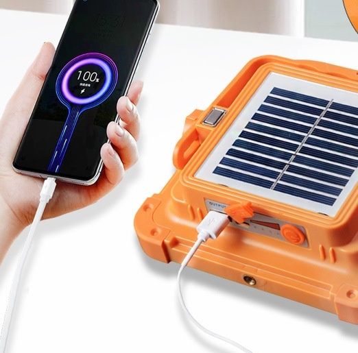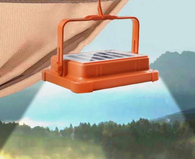 太陽光パネルを搭載した充電式のランタンで、キャンプや屋外活動に最適です。