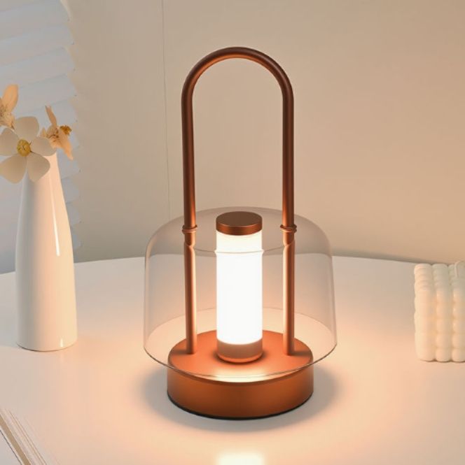 透明なガラスシェードと美しいアーチ型ハンドルが特徴的な充電式ランタンです。 洗練されたデザインはインテリアとして空間を優雅に演出し、寝室やリビング、書斎など様々な場所で活躍します。 持ち運びが簡単なので室内のどこでも使用でき、柔らかな光が心地よい雰囲気を作り出します。 充電式なので配線の心配がなく、自由な配置が可能です。 モダンで洗練されたフォルムは、日常に上質な癒しの時間をもたらす卓上照明として最適なアイテムです。