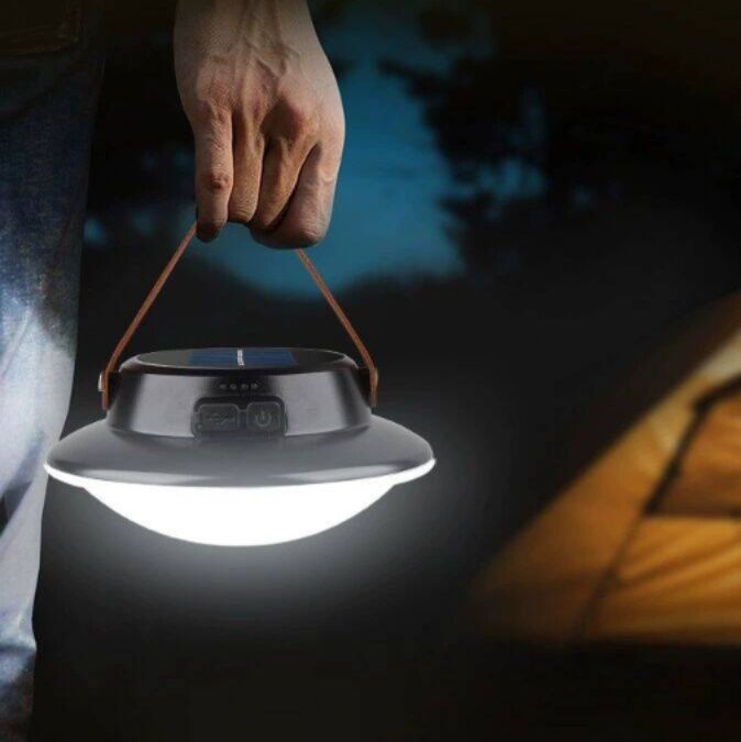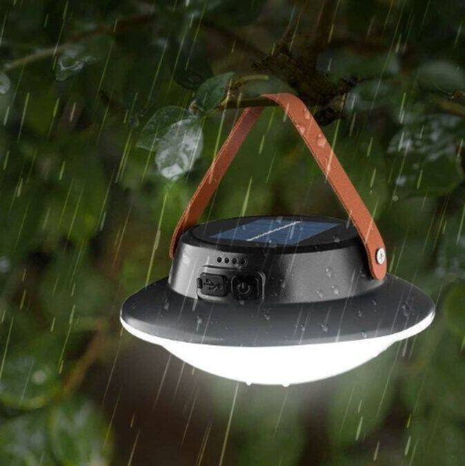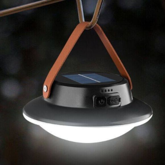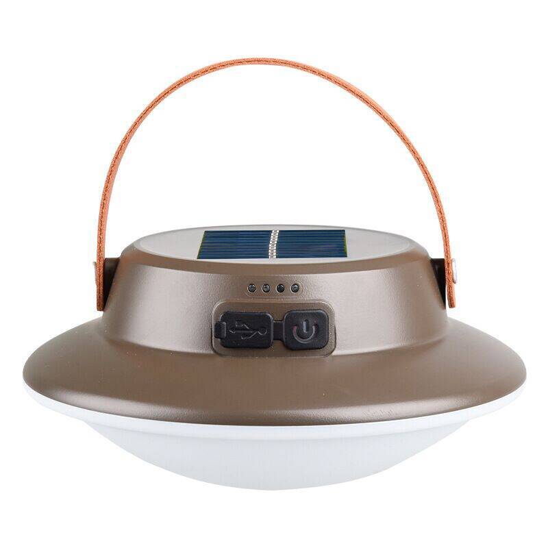 太陽光で充電できるソーラーパネル搭載のランタンです。 円盤型の本体に丈夫な取っ手が付いており、吊り下げても手持ちでも使える便利な設計になっています。 電源ボタンと充電ポート付きで、屋外でも室内でも活躍します。 軽量コンパクトで持ち運びやすく、キャンプや災害時の備えとして最適です。 環境に優しいソーラー充電機能で、電源のない場所でも安心してお使いいただけます。