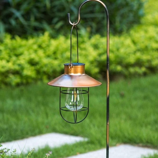 レトロな雰囲気漂う笠型デザインの吊り下げ式ランタンです。 金属製の傘と透明なガラスシェードの組み合わせが、庭園や玄関先を優雅に照らします。 専用のスタンドポール付きで、屋外の好きな場所に設置可能です。 柔らかな光が周囲を包み込み、夜の空間に温かみのある雰囲気を演出します。 キャンプやアウトドアシーンはもちろん、日常使いのランタンとしても最適な吊り下げ照明です。